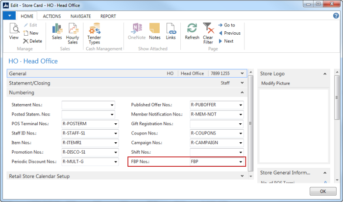 On the Store Card for Head Office, a new Number Series must be set for the Frequent Buyer Program headers.
