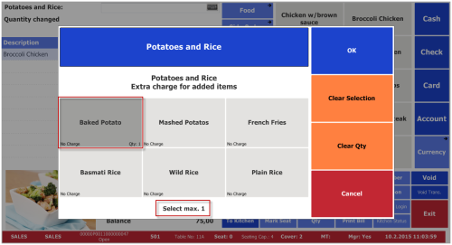 The Potatoes and Rice item modifier is triggered by request and has max. selection 1.