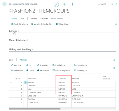 Tip: POS Menu ITEMGROUPS is active in space #Additional Menu 2 and this menu includes these lines: