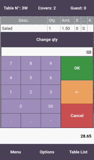 POS command QTYCH behind the Quantity column in a journal data grid: