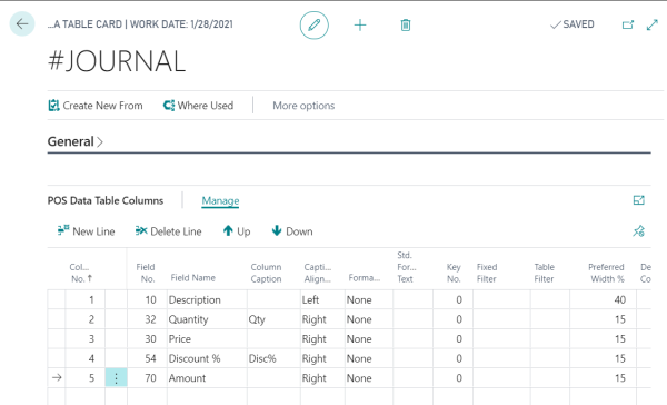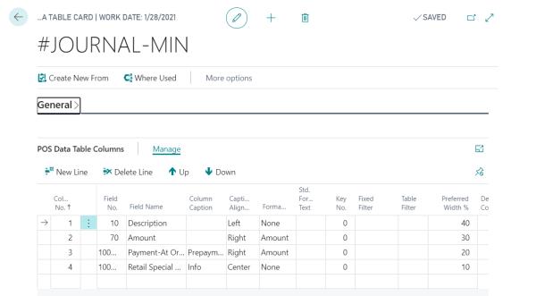 The POS Data Table Card for #JOURNAL-MIN: