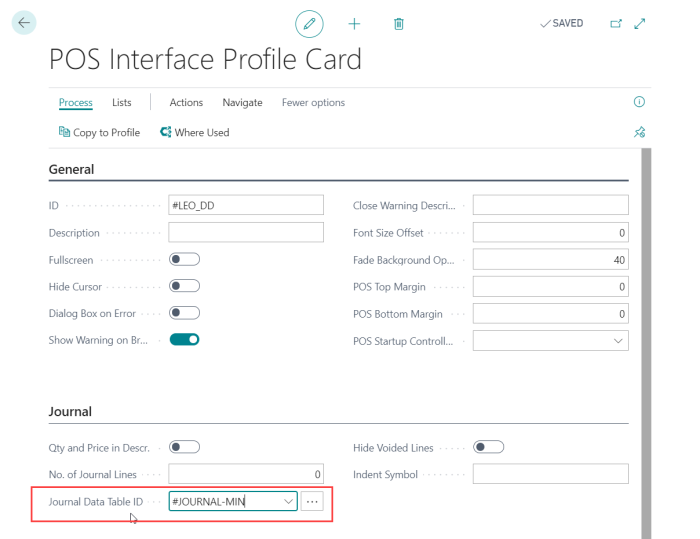 To update the Dual Display sales lines separately from the POS Terminal sales lines, a specific Interface Profile needs to be assigned to the Dual Display as well as a separate Journal Data Table.