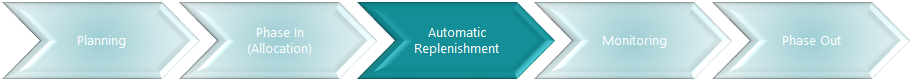 Automatic Replenishment covers all steps from calculating Out-of-Stock, current inventory and demand, journals, thresholds until finally creating the Purchase Orders, Transfer Orders or Sales Orders.