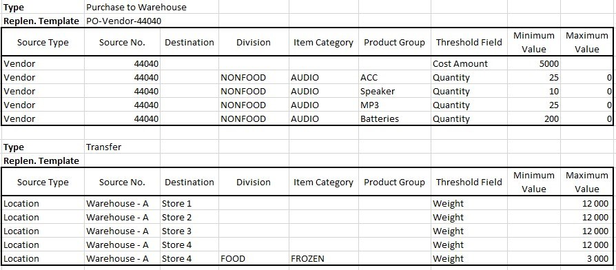 Replenishment Setup