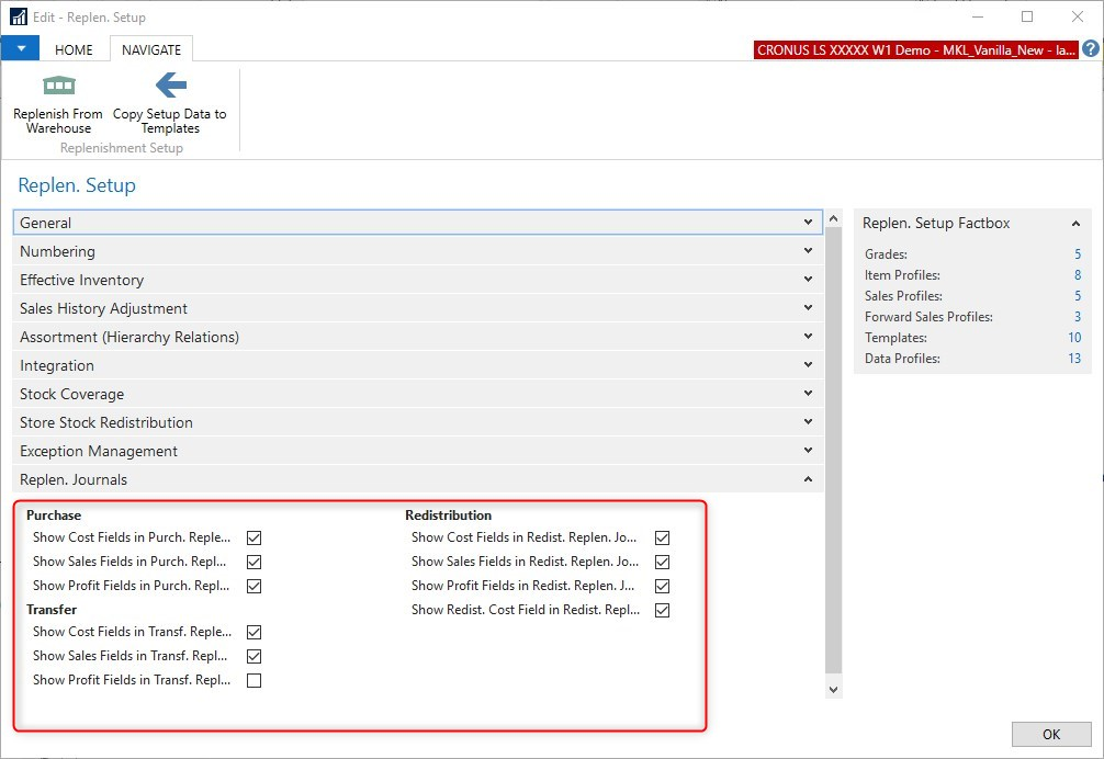 Replenishment Journals - thresholds fields visibility