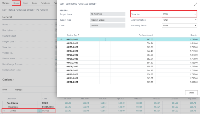 - Click Edit Budget under Create in the menu to open the Edit Retail Purchase Budget page.