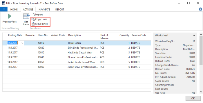 Journal lines can be copied or moved from one worksheet journal to another, for example if they were entered or imported to a incorrect worksheet:
