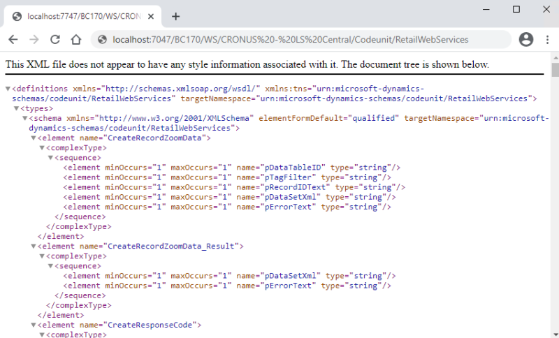 http://localhost:7047/BC190/WS/CRONUS - LS Central/Codeunit/RetailWebServices