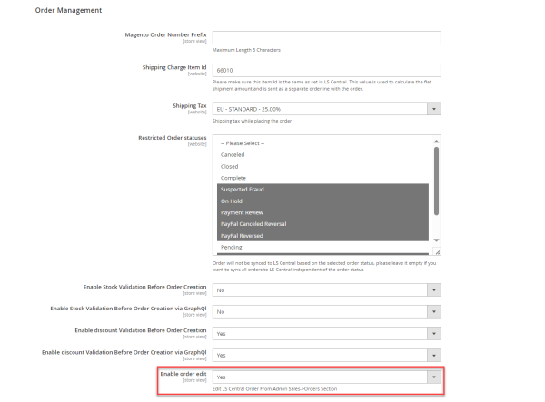First, you must enable this feature by navigating to LS Retail - Configuration - LS Retail Configuration - Order Management page: