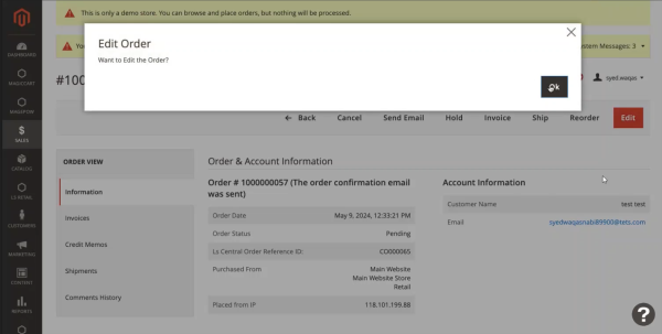Order edit is basically about how to edit and update recently placed orders from the Magento Admin order view page.