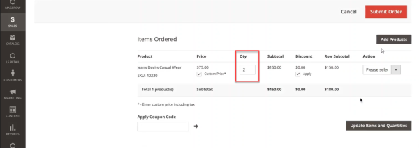 - Edit the order by increasing or decreasing the quantity, and then click Update Items and Quantities before submitting the order.