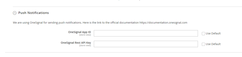 | Push Notifications: | Currently, OneSignal is used for push notification services. In order to use OneSignal you must create an account and set up the app. Then add the relevant App ID and Rest API Key. |