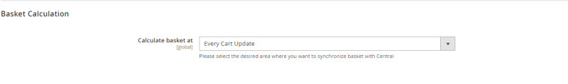| Calculate basket at: | Option to choose (between every cart update, once on checkout, or both) on which location Basket Calculation has to be triggered. |