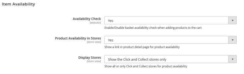 | Product Availability in Stores: | Option to show a link in the Product Detail page to see the availability of items in other physical stores with locations. The default value is Yes. |