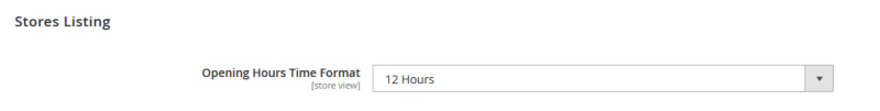 | Opening Hours’ Time Format: | Controls the format of operating hours that are displayed in the Stores Listing page. The default value is 12 Hours. |