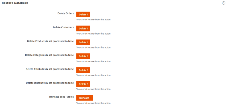This screen has various replication options to reset the database for various areas.