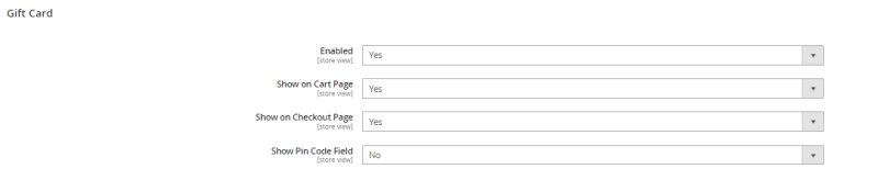 | Show Pin Code Field | Option to show pin code field when applying gift card. |