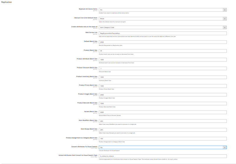 | Variant Batch Size: | Batch size for the processing of product variants. The default value is 2000. |