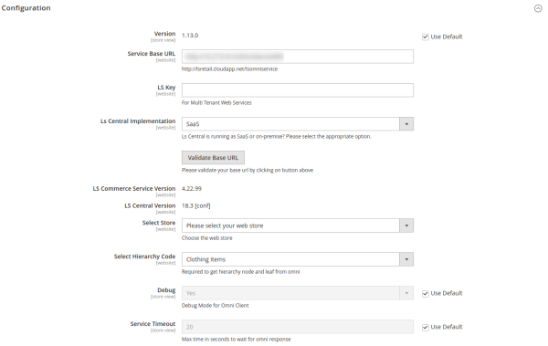 | Service Base URL*: | This field specifies which Commerce or LS Central URL you want to connect with Magento. |