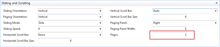 - On the Sliding and Scrolling FastTab, enter the number of Pages that are necessary. For demonstration purposes, the demo data has 5 rows and two pages, even if there are only two restaurants. It would be enough to have 2 rows and 1 page.