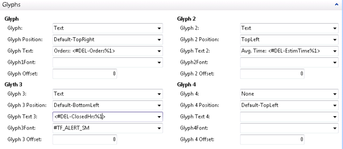 - Open the Glyphs FastTab and arrange the text of the glyphs as the following picture shows: