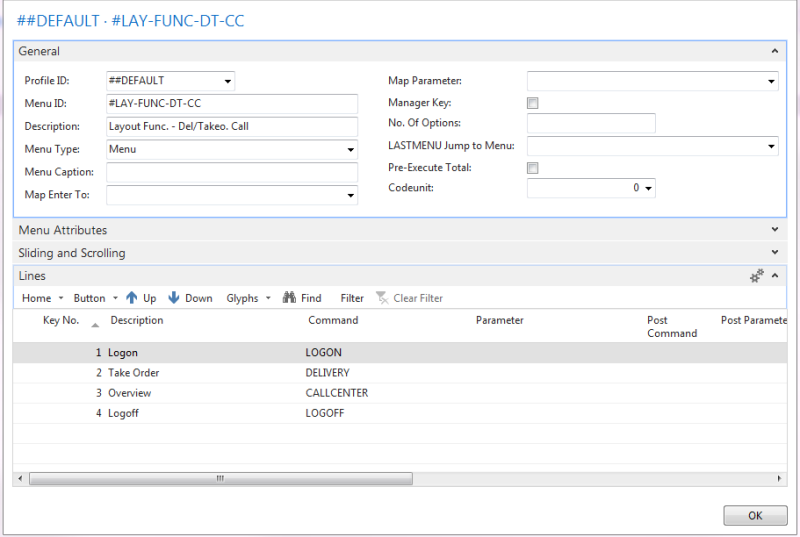 Open the #LAY-FUNC-DT-CC menu (Point of Sales - Design - Menus):