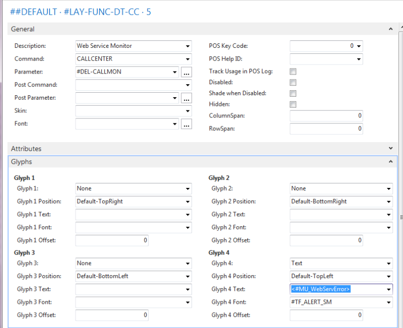 When you have inserted the Web Service Monitor in the Call Center, you need to do the same for each restaurant. The Menu ID is #LAY-FUNC-DT, and the Parameter for CALLCENTER Command is #DEL-RESTMON.