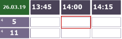 - in time-line view, select an interval button in the dining table row as long as it is free. If the interval is not the first interval, the program will change the reservation time to the interval time.