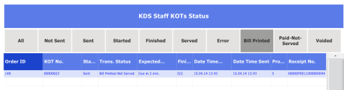 This example shows the KOTs status when the order is paid before it is worked on in the KDS system.