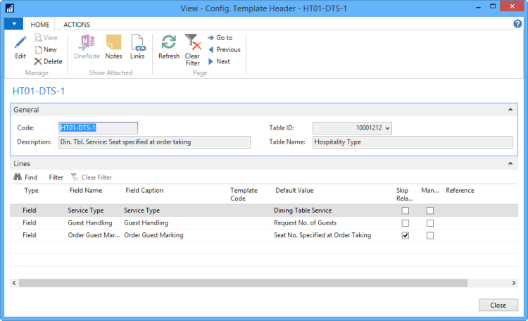 You can use configuration templates for your hospitality types. The templates are created when you insert default data for LS Retail and Hospitality.