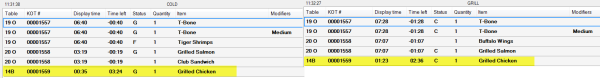 | Bump the line on Cold Station. | C is now displayed with green color since all order lines on Cold have been bumped. The item line on the chit is green indicating that the item is finished.