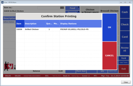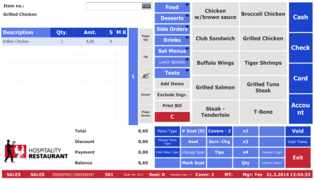 | In Hospitality POS, open a table and order Grilled Chicken. |