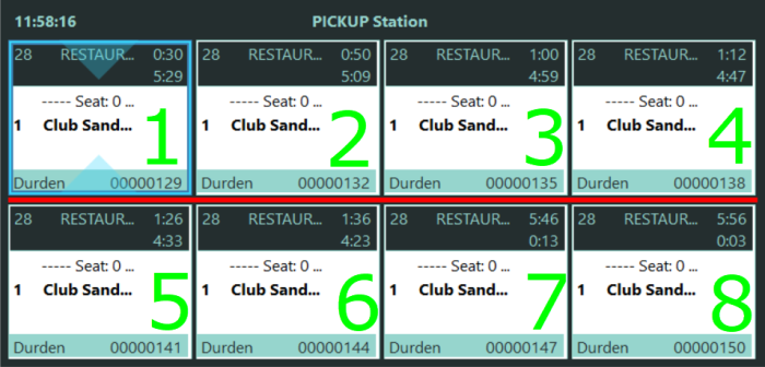 When you click the button on the Display Station, or press a button on a bump bar, the chit in cell no. 6 is bumped. In this example chit number 00000144 is bumped. The remaining chits, 00000147 and 00000150, are moved to cells 6 and 7 after the bump.
