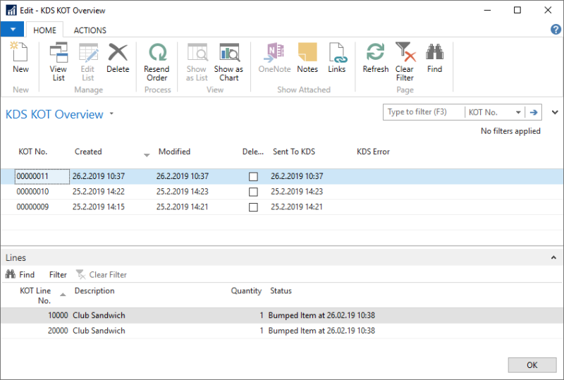 KDS KOT Overview displays information about the KOTs as they have been registered by the KDS Web Service: