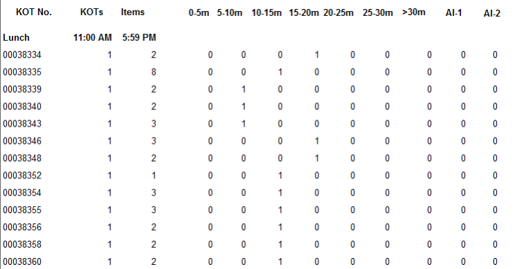 - 0-5m: The total of KOTs that took up to 5 minutes to prepare.