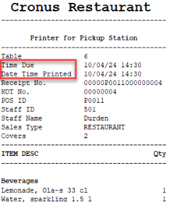 The affected fields on the KOT are the Time Due and Date Time Printed.