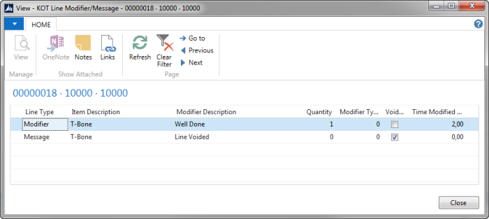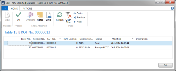 KDS Modified Statuses gives an overview for the selected KOT in what has been done with the KOT/KOT Lines in the display stations: