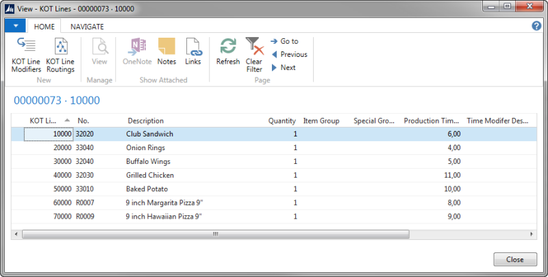 Note: An order can include 4 lines and only 2 of them are items with KDS routing data. Only order lines which have items with production sections connected to display station can become KOT lines.