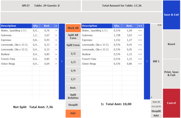 How to: Split the Bill by Amount Between Guests