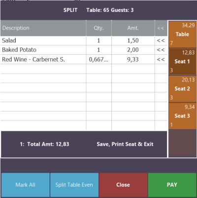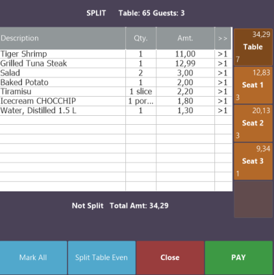 POS P0080 Restaurant in S0005 - phone layout, guest not selected on splitting - guest is selected before splitting (Hospitality Type Select Guest on Splitting is No).