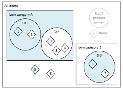 For example, a whole item category can be routed to a station, but a specific retail product group from that item category could be excluded.