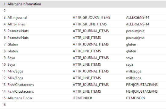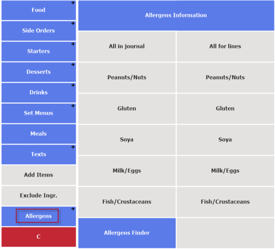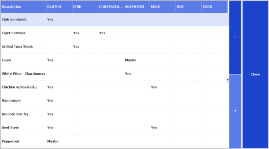 The demo data Allergens menu is one possible way of showing allergens on the POS.