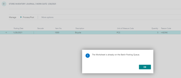 - Create a Store Inventory Journal and post it.