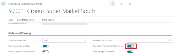 - In the Store Card, select the Use Batch Posting for Statements check box: