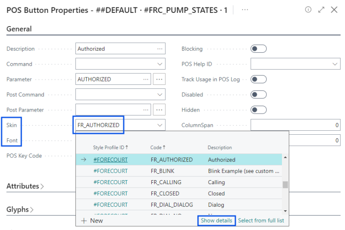 Right-click the Authorized button in the POS Menu (not in the Forecourt ribbon), and select Button Properties. The POS Button Property page opens.