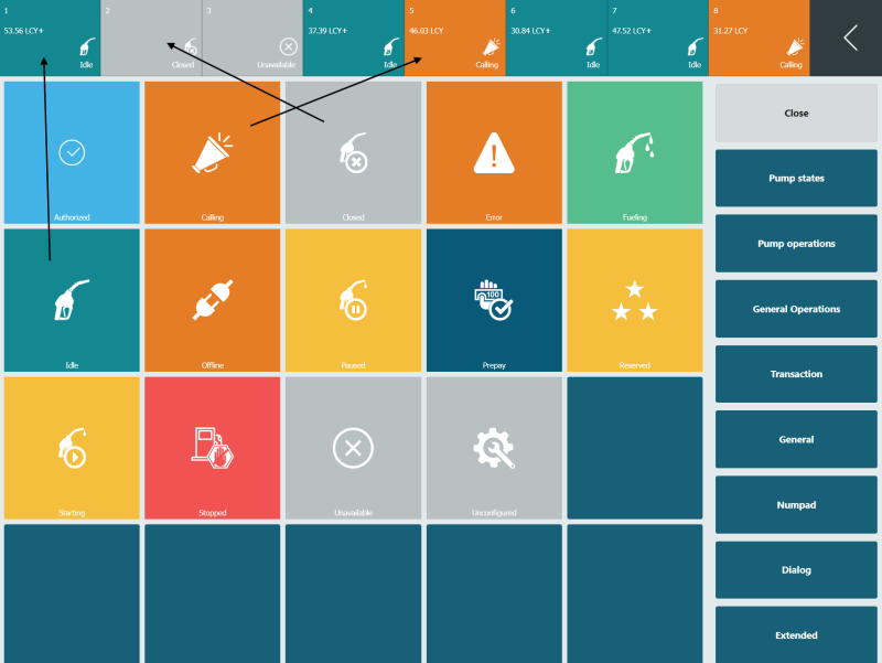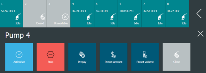 Note: The buttons do not look exactly the same, since the Forecourt ribbon only uses the skin and font from the POS style profile and icons from the Menu button on the POS.