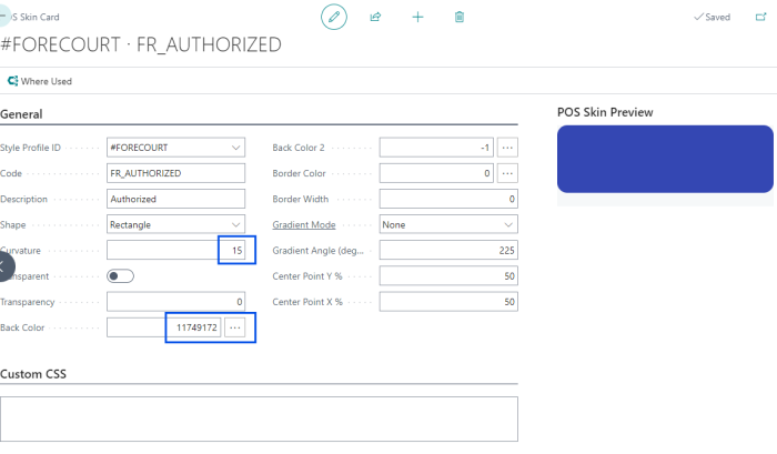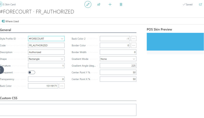 Forecourt ribbon styles let you change the font and skin of the elements in the Forecourt ribbon. The styles are configured in a standard POS Menu and must be enabled.