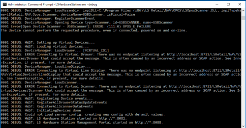 Note: You can also run Hardware Station as a console application by running C:\Program Files (x86)\LS Retail\LSHardwareStation\LSHardwareStation.exe with the parameter -debug.
