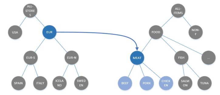 The example below shows relations between the nodes EUR and FOOD and also between the nodes EUR and MEAT.
