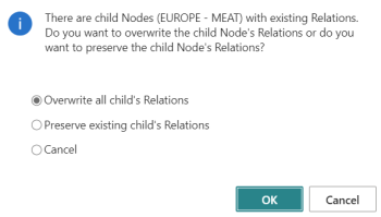 There might be situations, when you want to preserve previously created child relations. When you create a new relation and the system recognizes an existing child relation, it will ask you if you want to overwrite or preserve the child's relation.